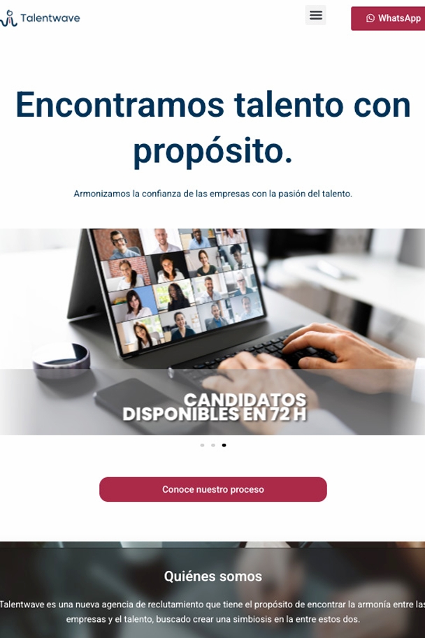 Landing page moderna para empresa de reclutamiento IT con formularios inteligentes, integración con ATS y dashboard de métricas.